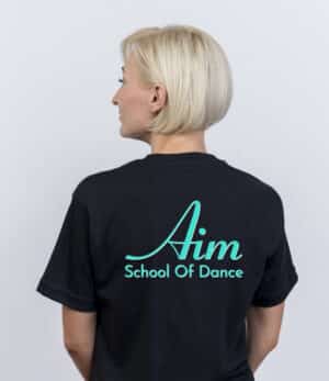 Introducing the AIM Adult Branded T-Shirt, the perfect choice for dancers who want to look and feel their best while attending adult dance classes. This t-shirt is crafted from 100% cotton, making it comfortable and breathable for even the most rigorous dance routines.