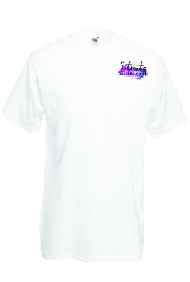 The Streets Dance white T-Shirt will have the logo printed on the top left on the front.